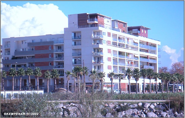 Des immeubles dans les grandes villes comme Montpellier,avec de grands balcons et de grandes fenêtres.